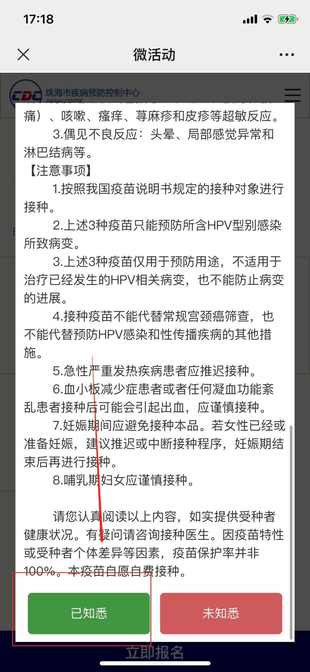 2.阅读【抽签活动知情同意书】,下拉点击“已知悉”;