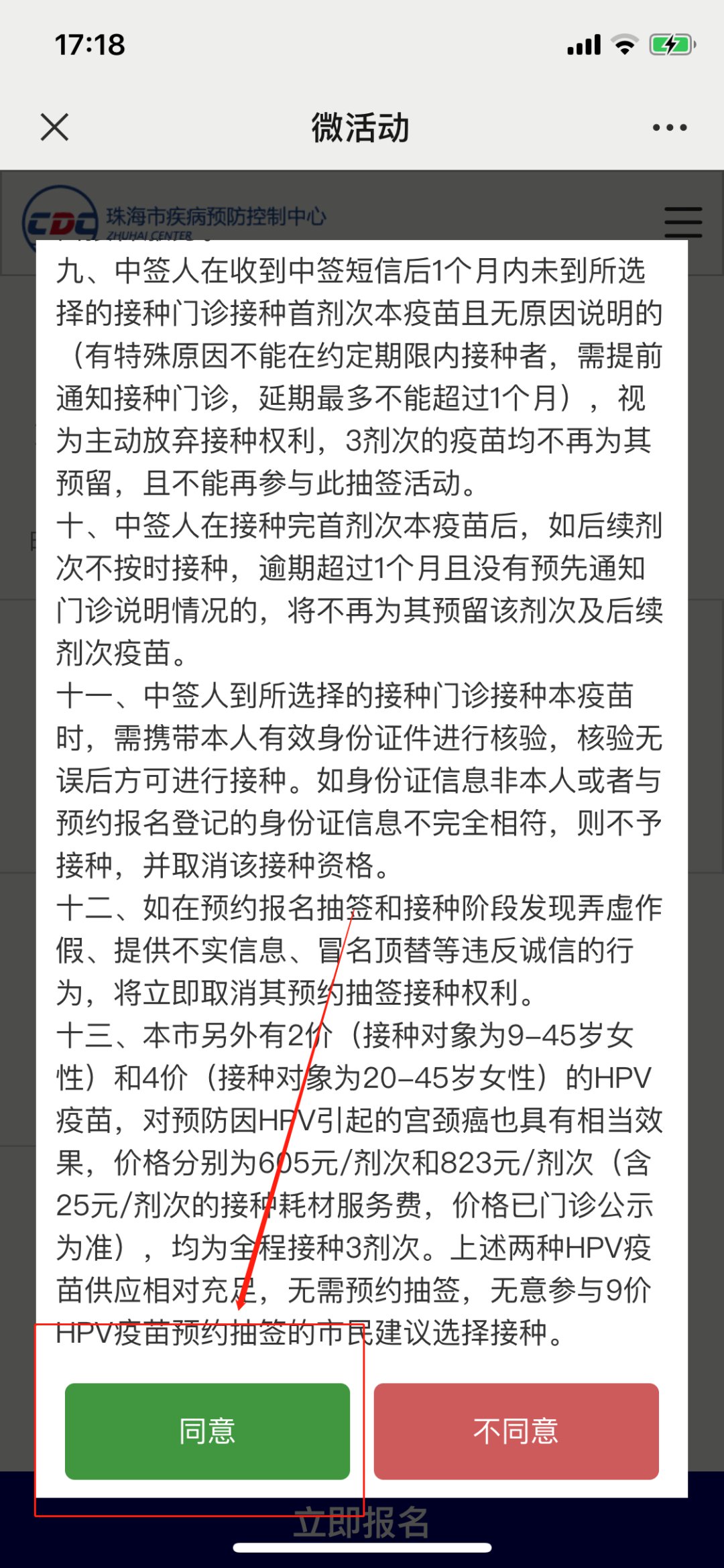 1.进入预约入口后,阅读【抽签活动说明】,下拉点击“同意”;