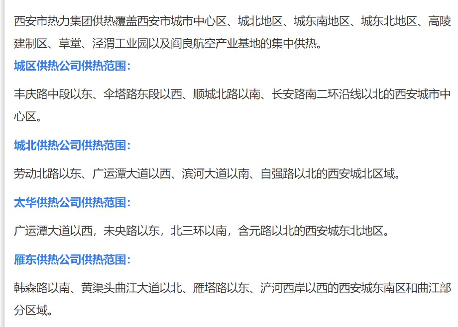 西安热力总公司供热范围一览: