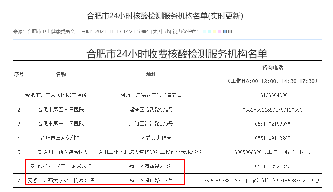 合肥蜀山区24小时核酸检测点