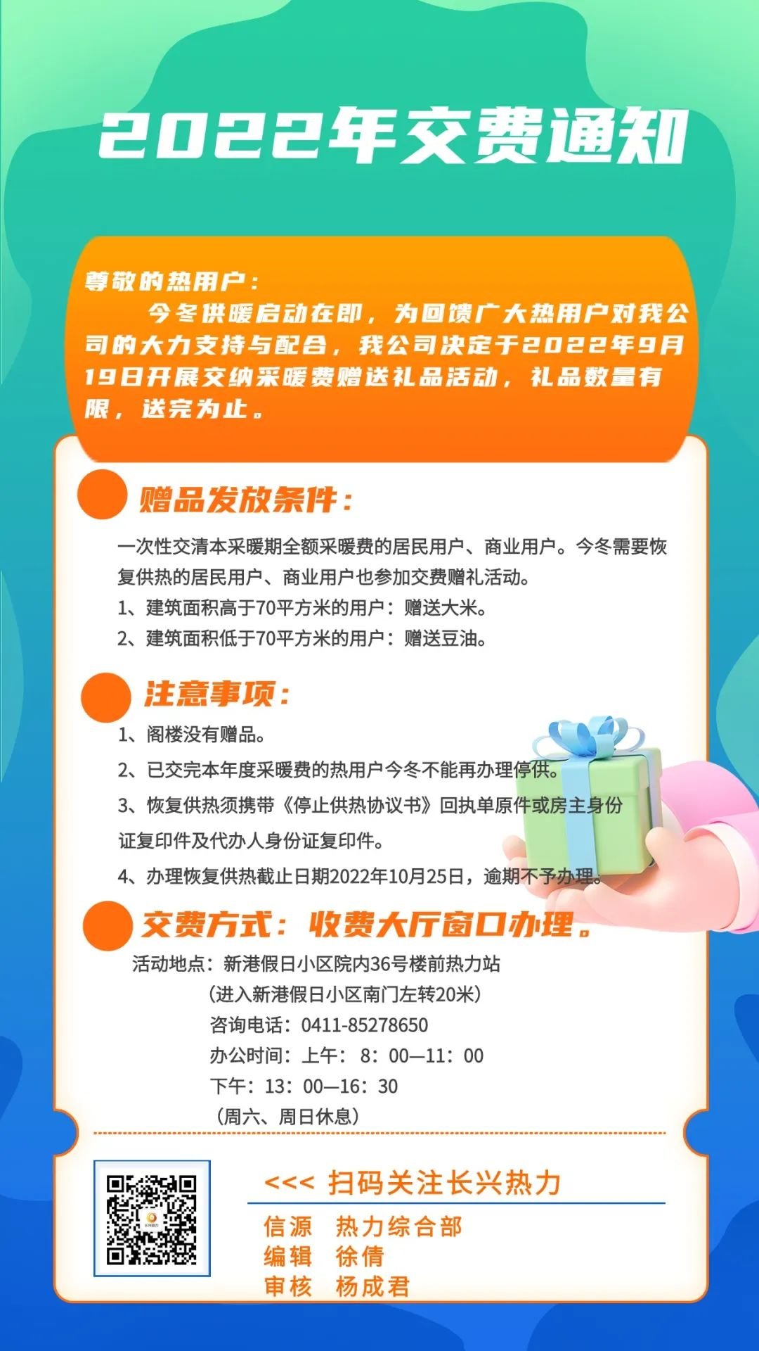 例如大连长兴热力供暖公司缴费时间截至10月25日