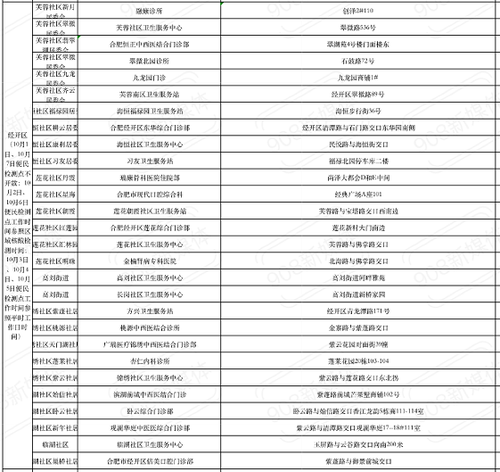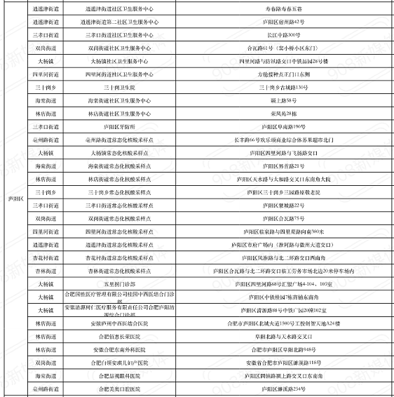 2022合肥免费便民核酸检测点大汇总(皖事通官微9月30日公布)
