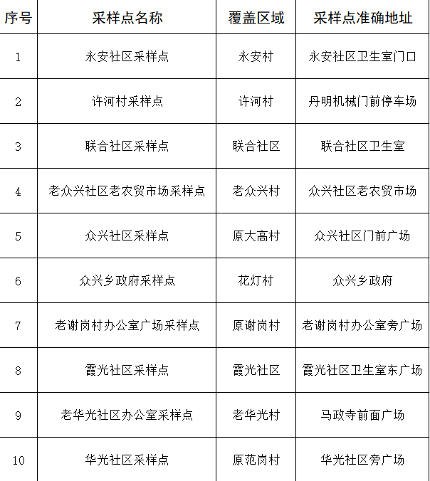 附:众兴乡区域核酸检测采样点信息