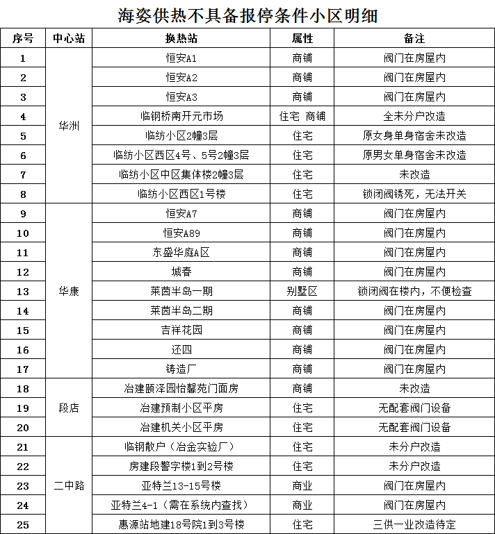 2022-2023年采暖季供热报停告知(附暂不具备报停条件小区明细)