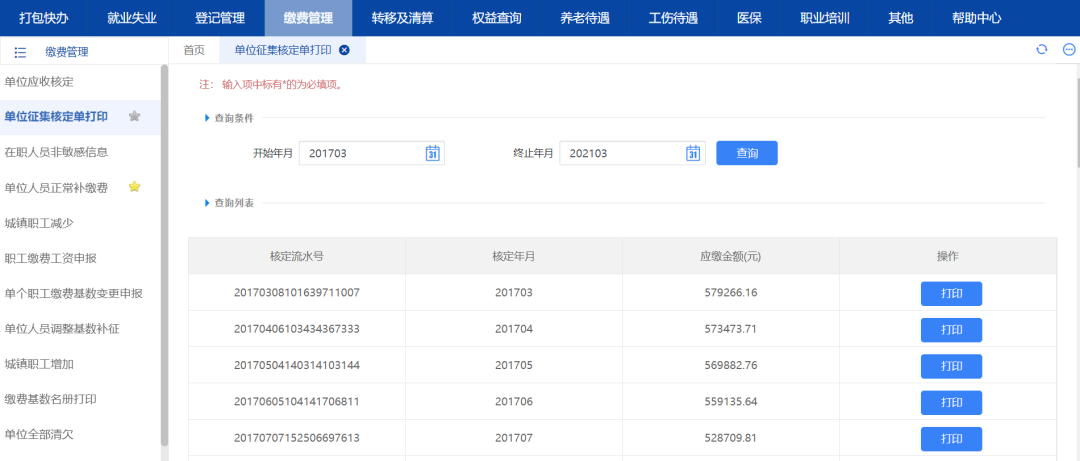 》》》天津社保补缴单位应收核定单位征集核定单打印流程