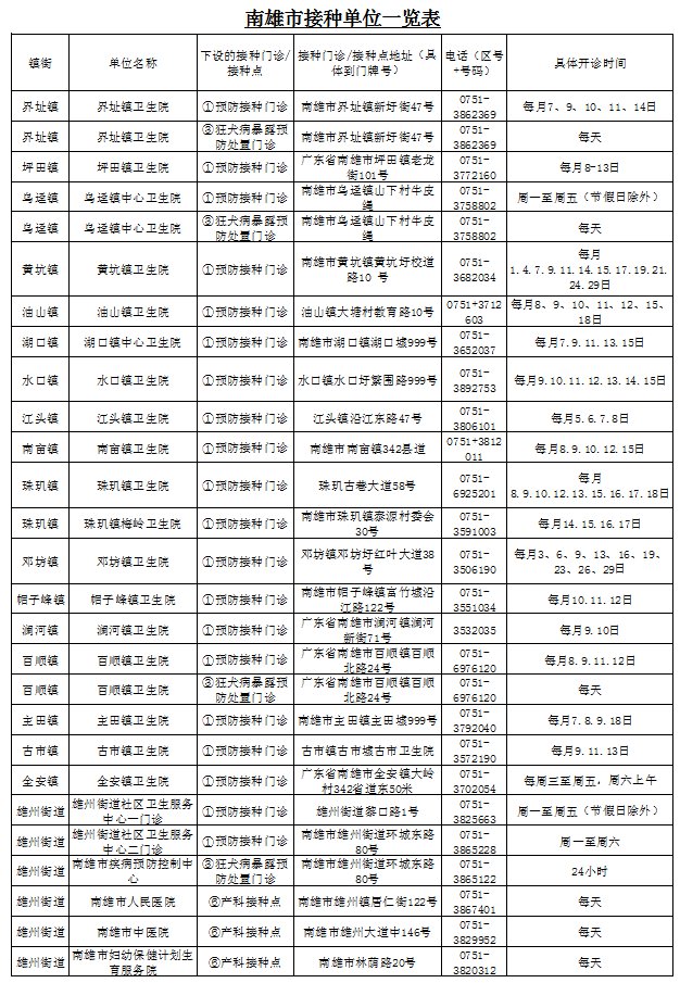 韶关南雄市新冠疫苗第三针(加强针)接种点: