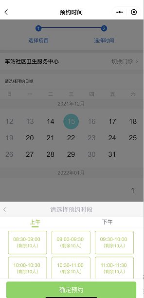 第三步:进入医院主页,选择预约时间和接种类型,完成预约。