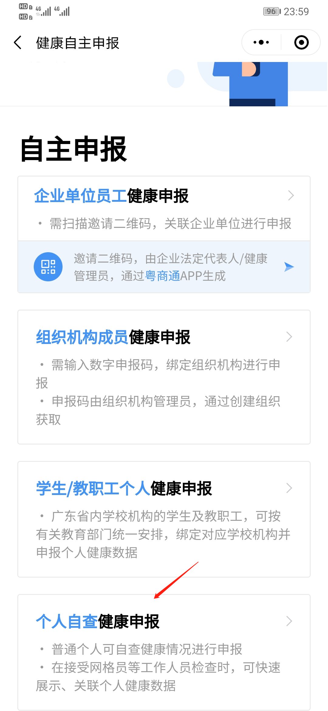 登录成功后,点击“健康申报”—“个人自查健康申报”。