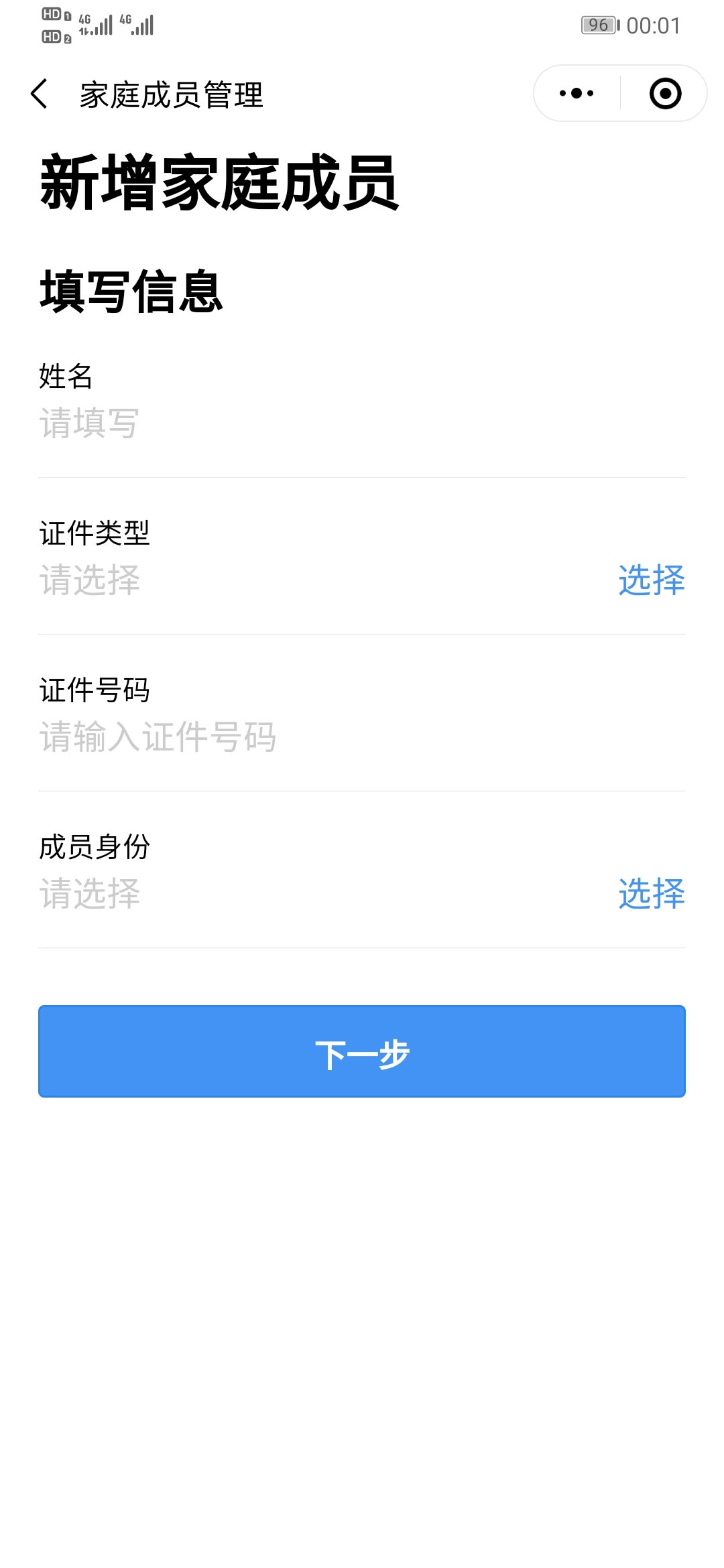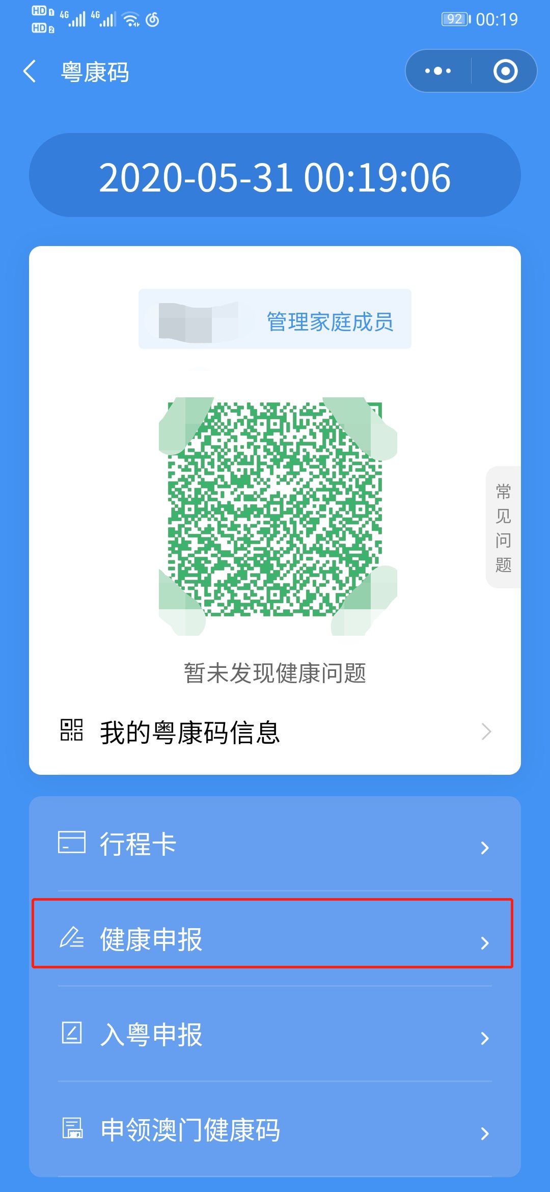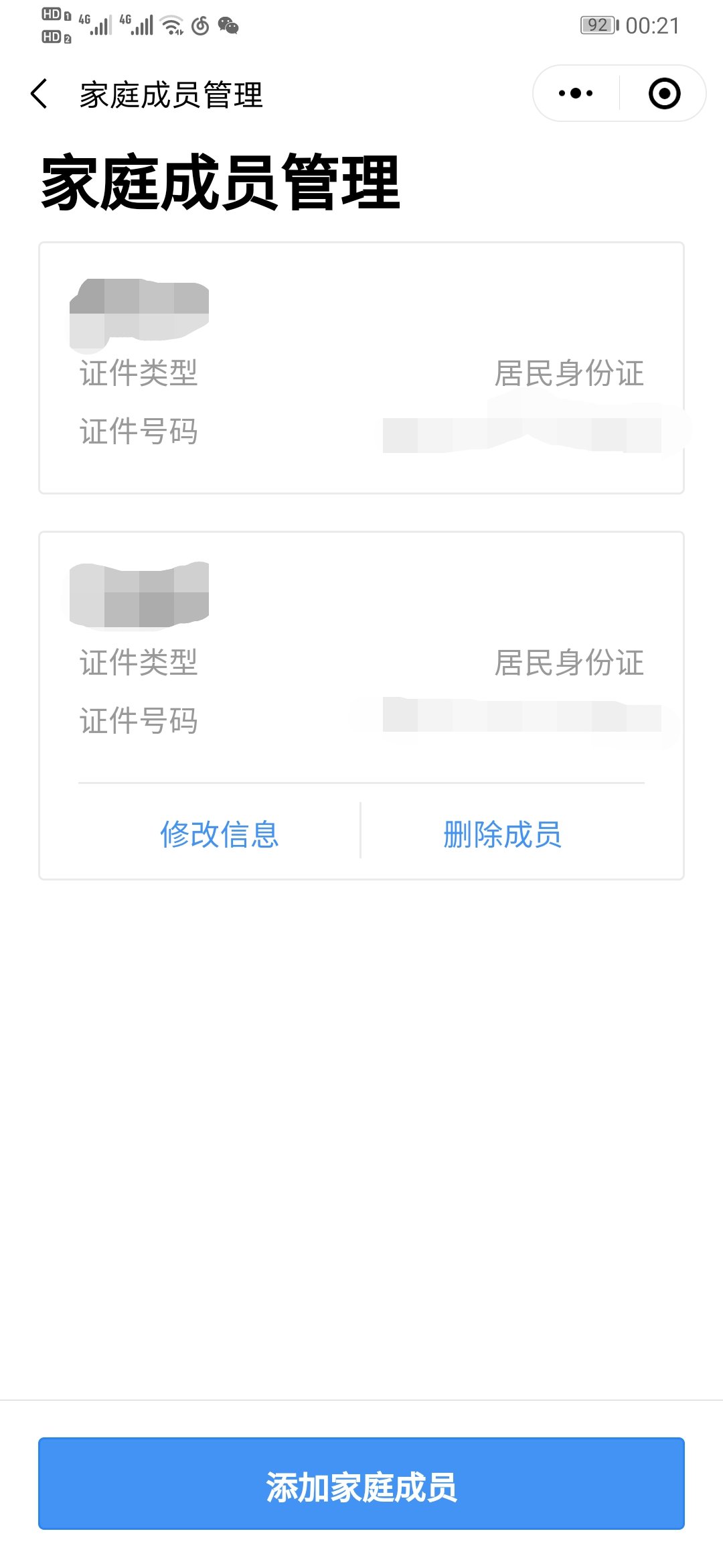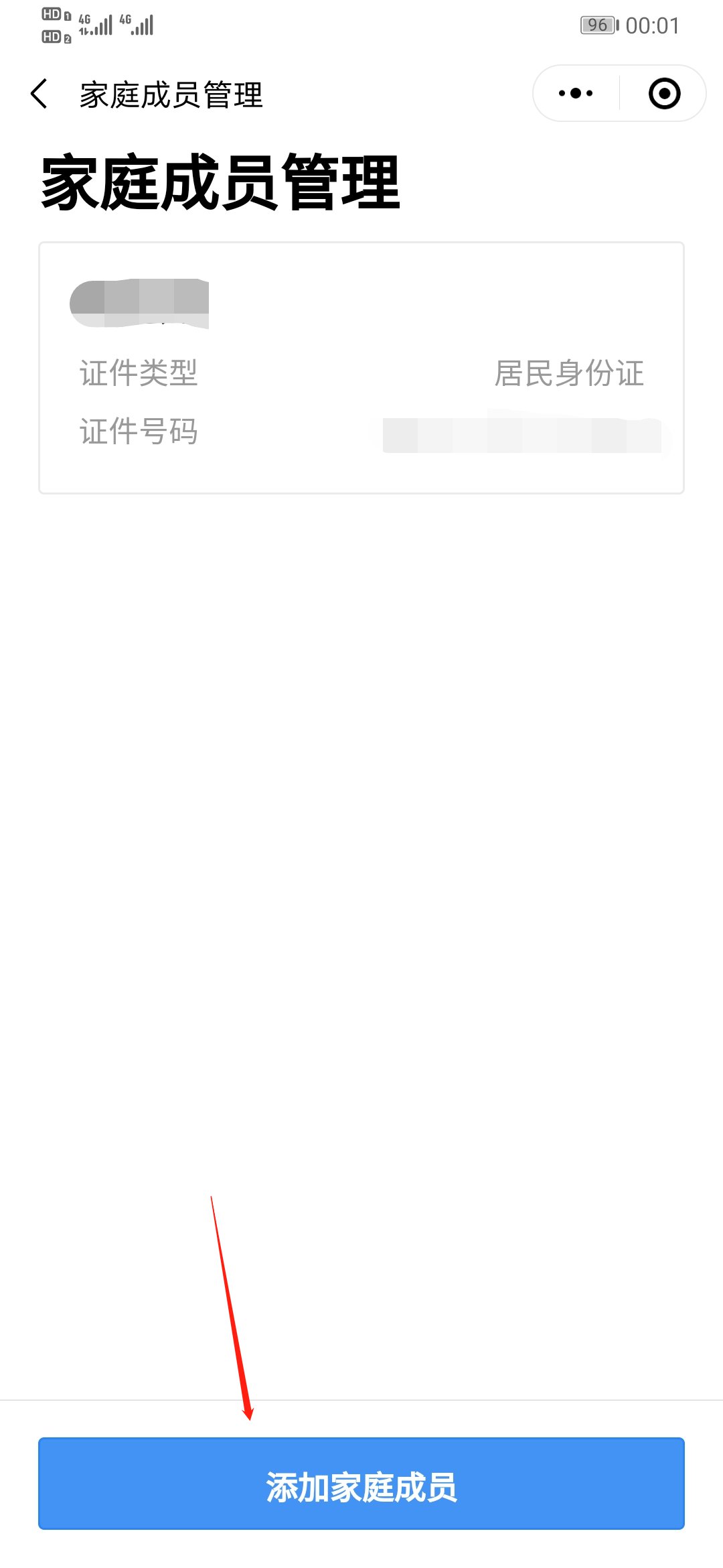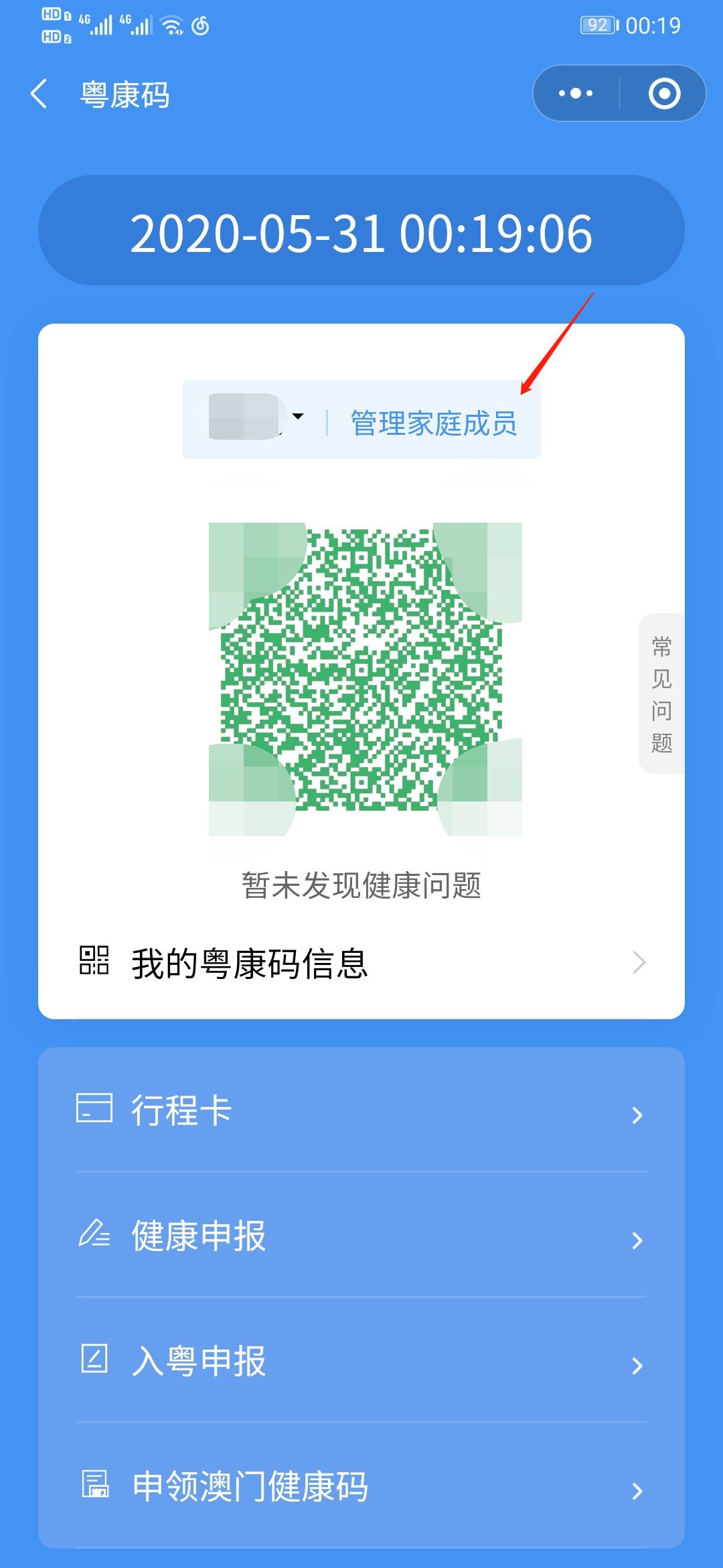 在粤康码申请页面找到“管理家庭成员”并点击,进入后点击添加家庭成员。