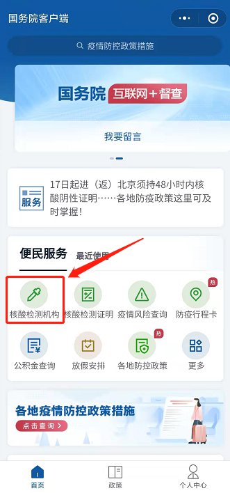 一、国务院客户端查询核酸检测点:(点击进入)