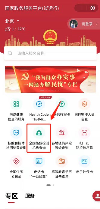 二、国家政务服务平台查询核酸检测点:(点击进入)