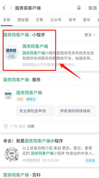 微信搜索“国务院客户端”,点击进入“国务院客户端”小程序。