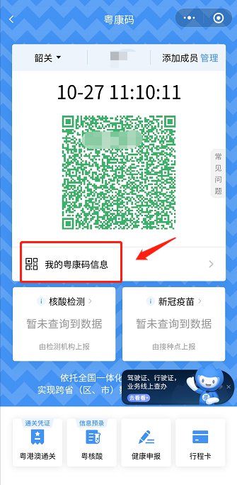 然后点击“我的粤康码信息”,进入后即可看到“核酸检测记录”。