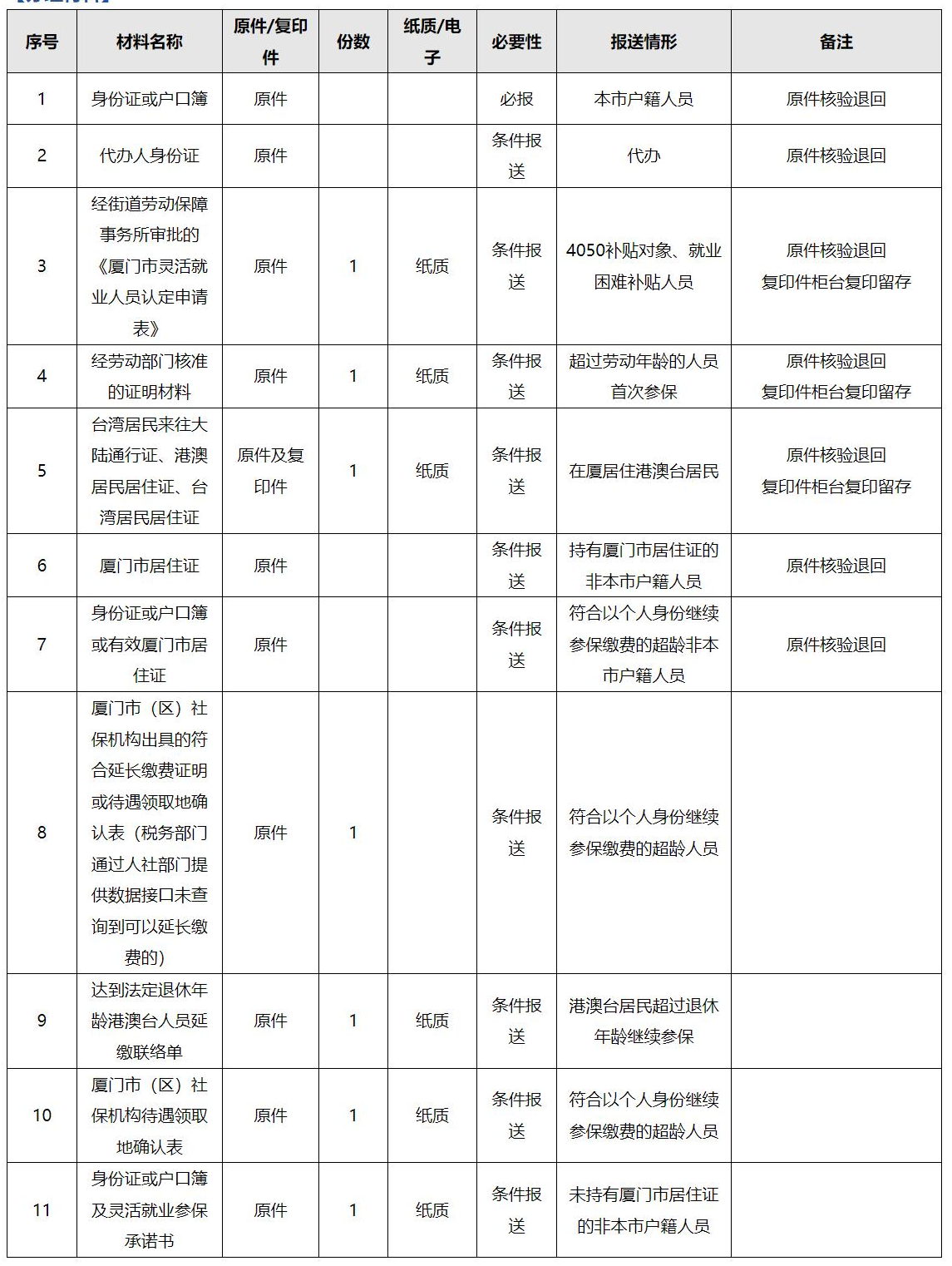 3.男满60周岁或女满55周岁后取得厦门市户口,曾在厦门参保且经厦门市(区)社保机构确认待遇领取地为厦门。