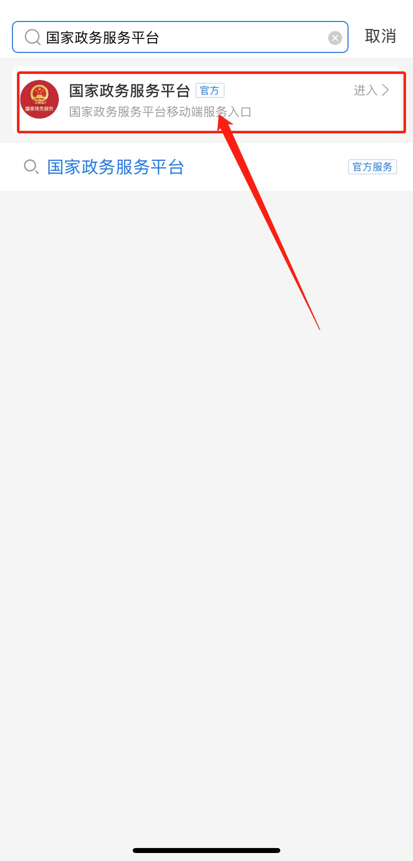 打开支付宝,搜索进入“国家政务服务平台” 。