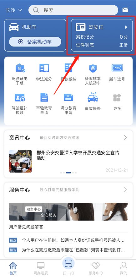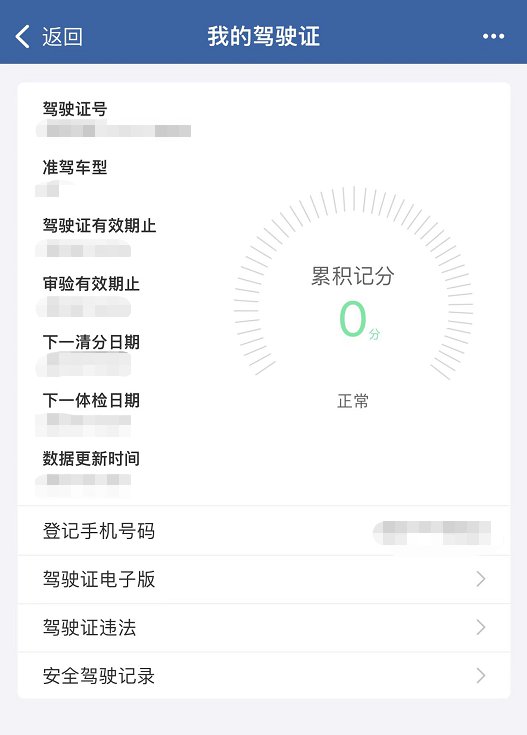 三、用户注册完成后系统将自动关联驾驶证信息,在页面主页右上角点击“驾驶证”可查看本人驾驶证记分、有效期、清分日期、体检日期、驾驶证违法等信息。