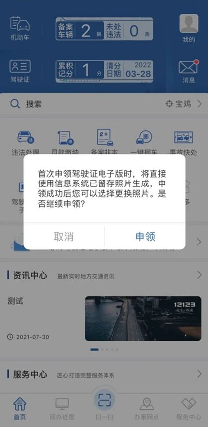 对信息系统已留存的照片符合要求的,“交管12123”APP将提示申请人可以使用留存照片申领电子驾驶证。