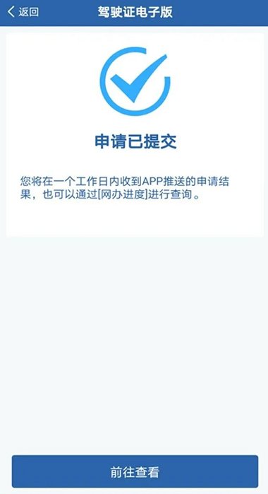 “交管12123”APP将提示申请人可以使用留存照片申领电子驾驶证。申请人确认后,经实人认证通过,“交管12123”APP将生成电子驾驶证,并推送申请成功信息。