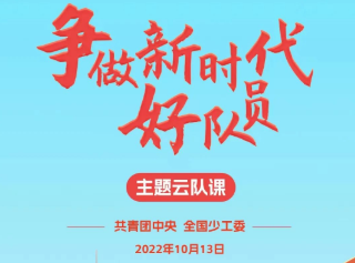 亲爱的队员们,党的二十大召开之际恰逢中国少年先锋队第73个建队日,共青团中央、全国少工委将于10月13日19:00—20:30开展“争做新时代好队员”主题云队课直播。
