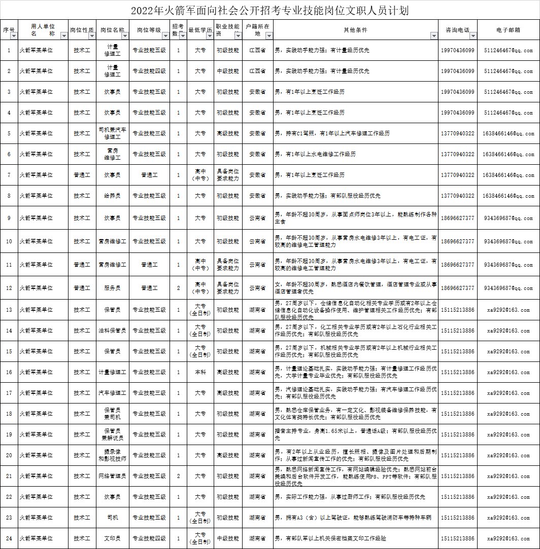 点击下载:2022年火箭军面向社会公开招考专业技能岗位文职人员岗位计划
