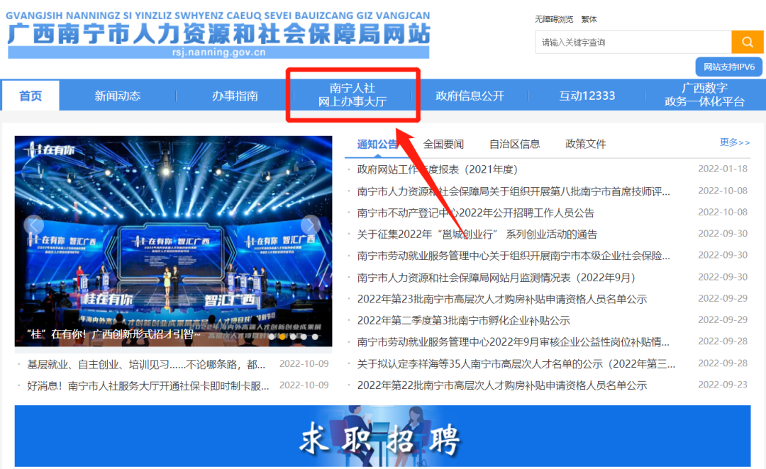 南宁市人社局网站(网址:http://rsj.nanning.gov.cn)