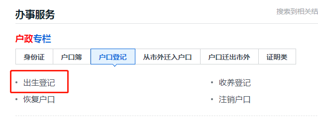 2、切换到对应城市“韶关”,在“户口登记”栏,选择“出生登记”;