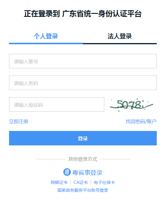 4、登录“广东省统一身份认证平台”;