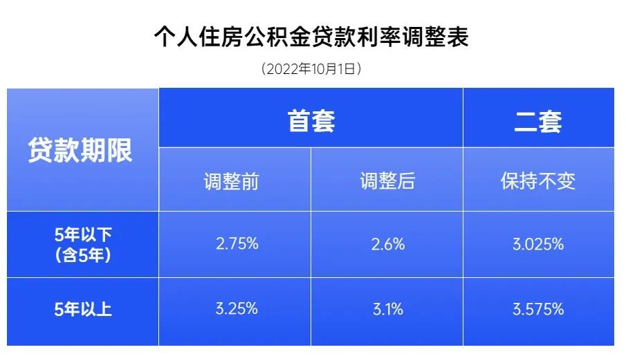 1、2022年10月1日及之后发放的公积金贷款,执行调整后的利率。