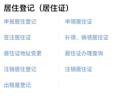 2、在“居住登记(居住证)”一栏选择“签注居住证”;
