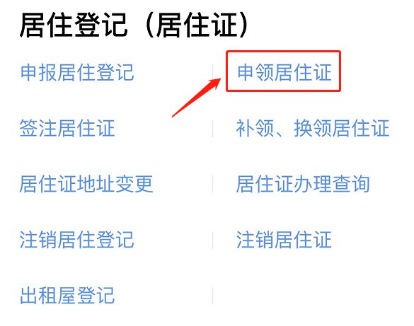 2、点击“申领居住证”;