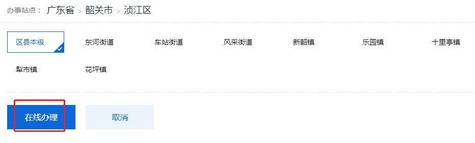 4、选择办事站点后继续点击“在线办理”;