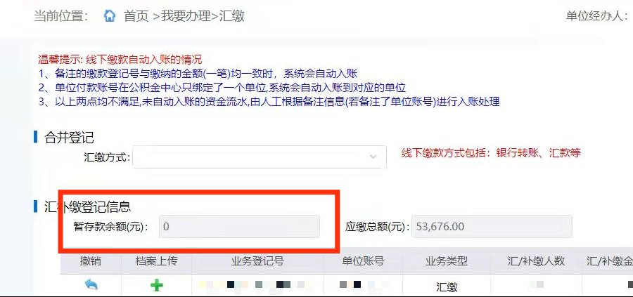 注:请单位经办人提交前确认委托扣款账户的余额足够支付本次的汇缴金额哟,如委托扣款账户余额不足会导致扣款失败!