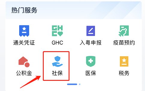 (2)进入后在首页的“热门服务”一栏点击“社保”;