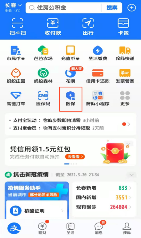 1.登录“支付宝”APP,依次点击“医保”“异地就医备案”。