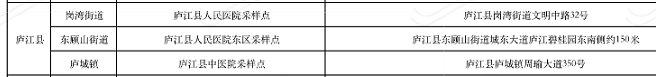 庐江县24小时核酸检测点有哪些 庐江核酸检测时间