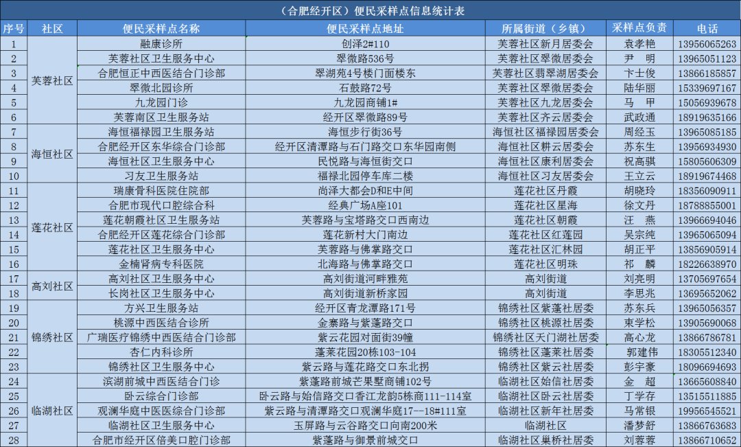 合肥经开区便民核酸采样点(10月13日版)