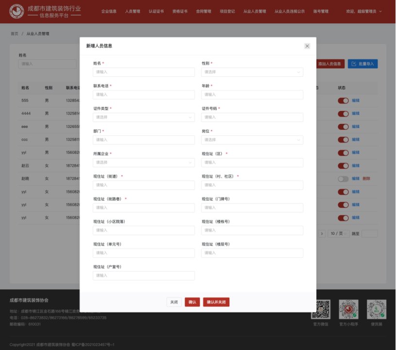 成都市建筑装饰行业信息服务平台从业人员管理录入操作手册