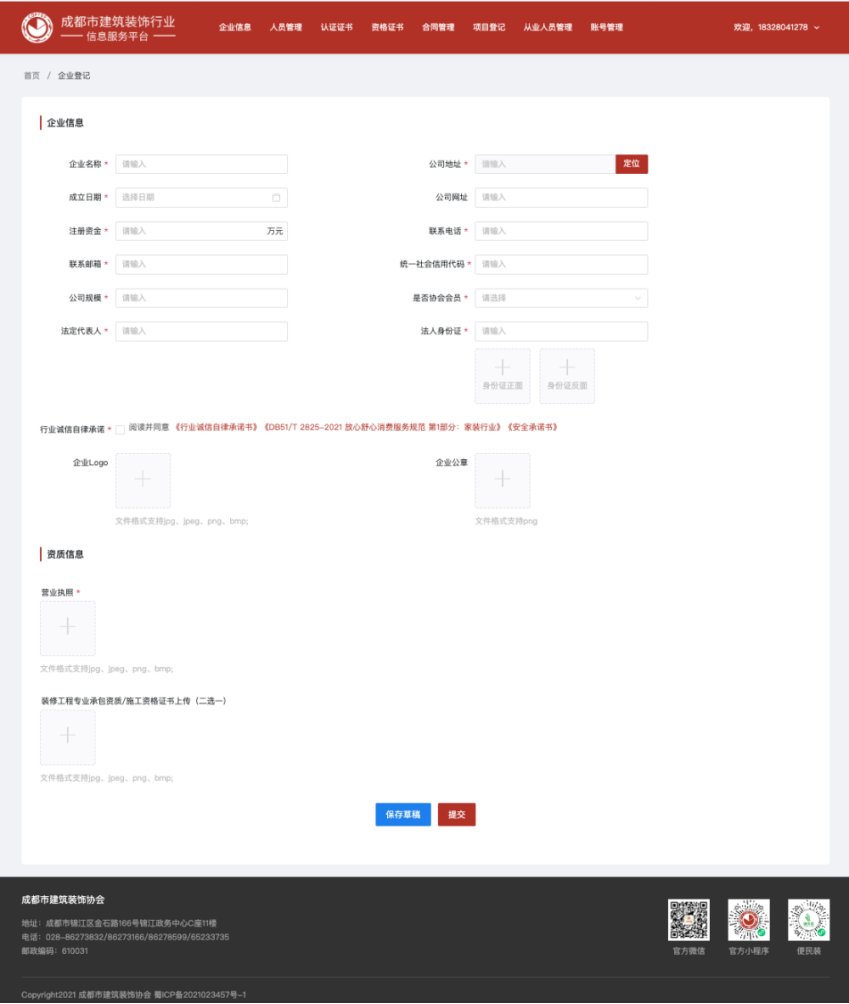 登录成功后,如当前登录企业未完善过企业信息,系统会自动跳转到企业信息完善页面。