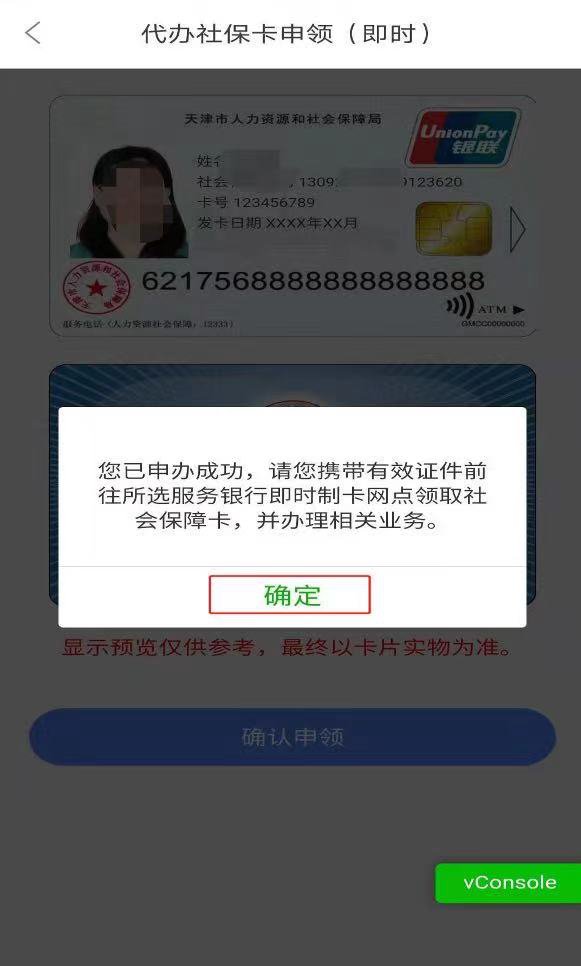 七、显示社保卡正反面信息,点击“确认申领”。