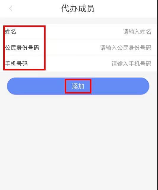 三、填写所需添加成员的姓名、公民身份号码、手机号码,点击“添加”按钮。