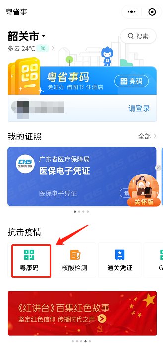 登录后点击“粤康码”。