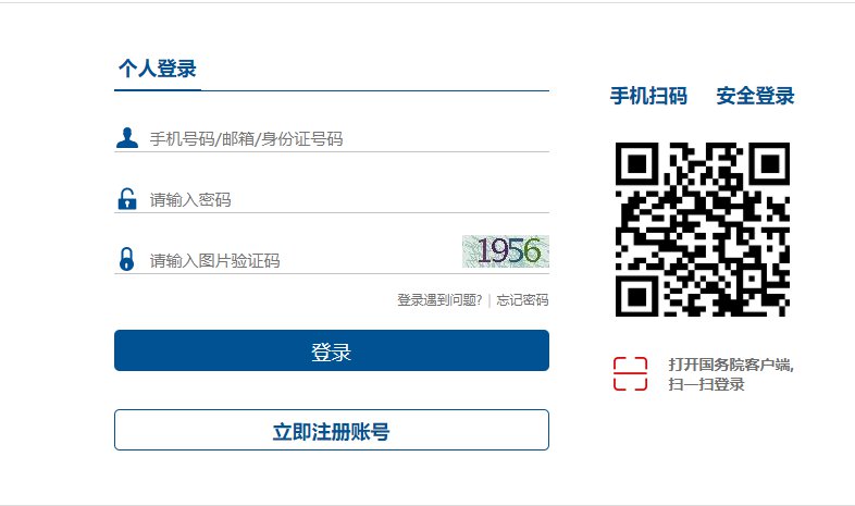 有账号的可以直接输入账号及密码登录,没有账号的需要注册后登录,也可以使用国务院客户端直接扫码登录。