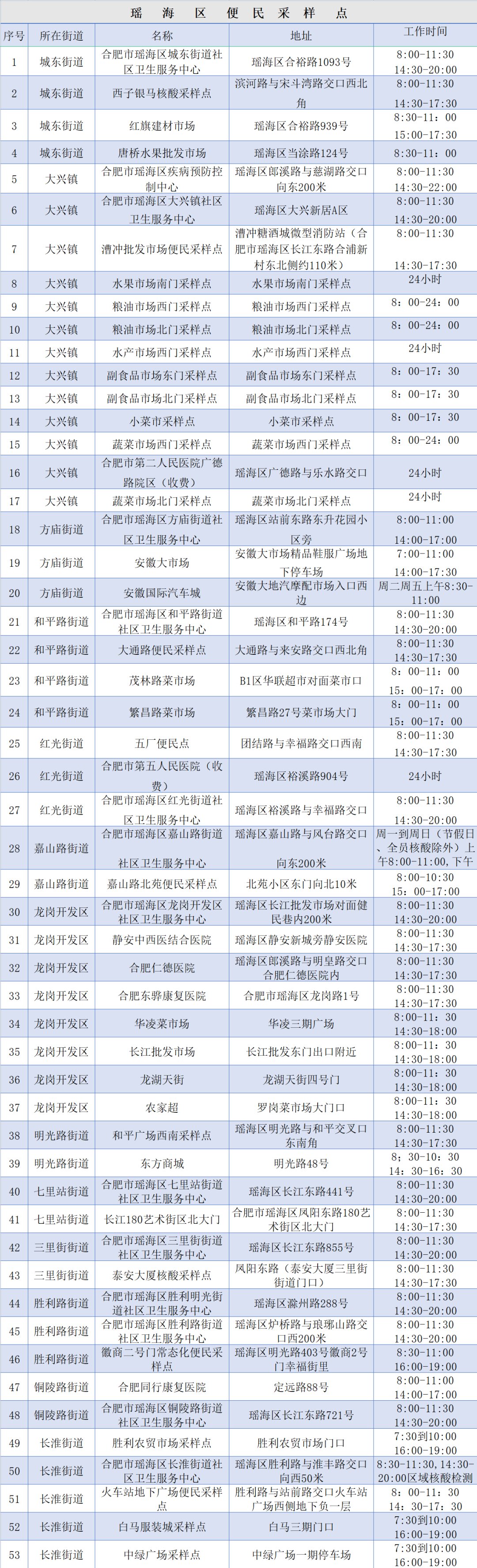 2022合肥城区便民核酸采样点汇总(2022合肥城区便民核酸采样点汇总图片)