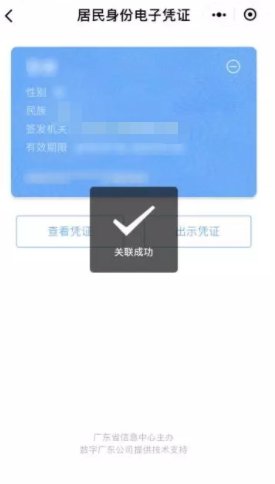 4.提示“关联成功”,这样就可以关联自己的居民身份电子凭证;