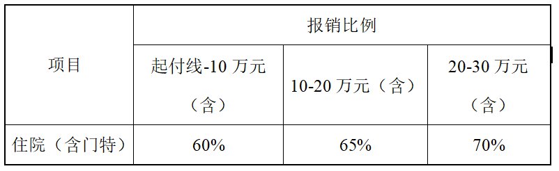 1.意外医疗:参保人员发生的6000元(含)以下的医疗费用(含门急诊),报销比例为70%;6000元以上的住院医疗费用,报销比例为80%;最高支付限额为35万元。
