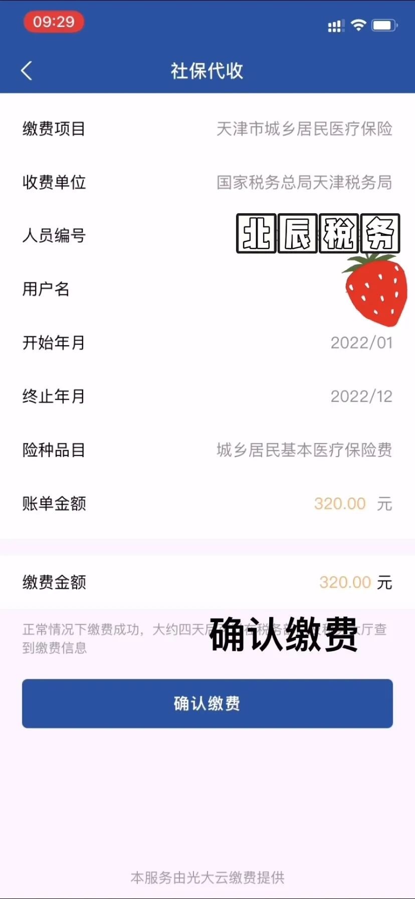 6. 确认缴费。