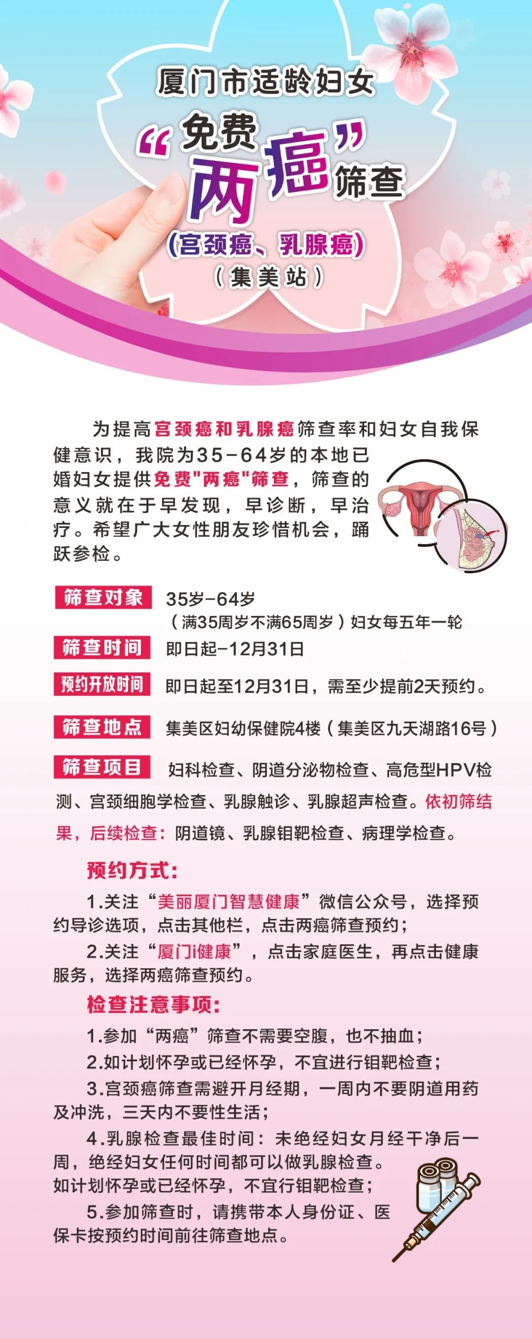 集美区妇幼保健院免费两癌筛查指南 妇幼保健院两癌筛查费用