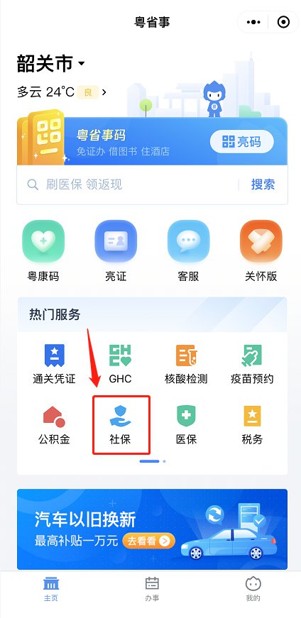 (1)进入后点击“社保”;