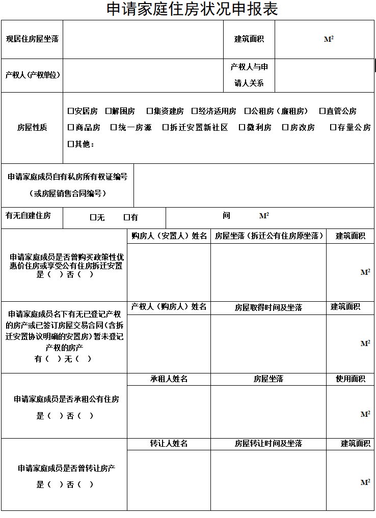 福州公租房申请家庭住房状况申报表