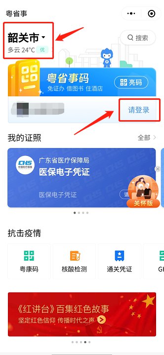 进入后定位在韶关市,然后登录。